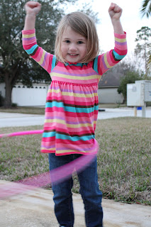 We had about 10 minutes of light when we got home last night so Addison wanted to practice her new skill. We call it a hula hoop. Special Agent Oso calls it a hoop-a-loop. Since when? Either way, Addison enjoys it.